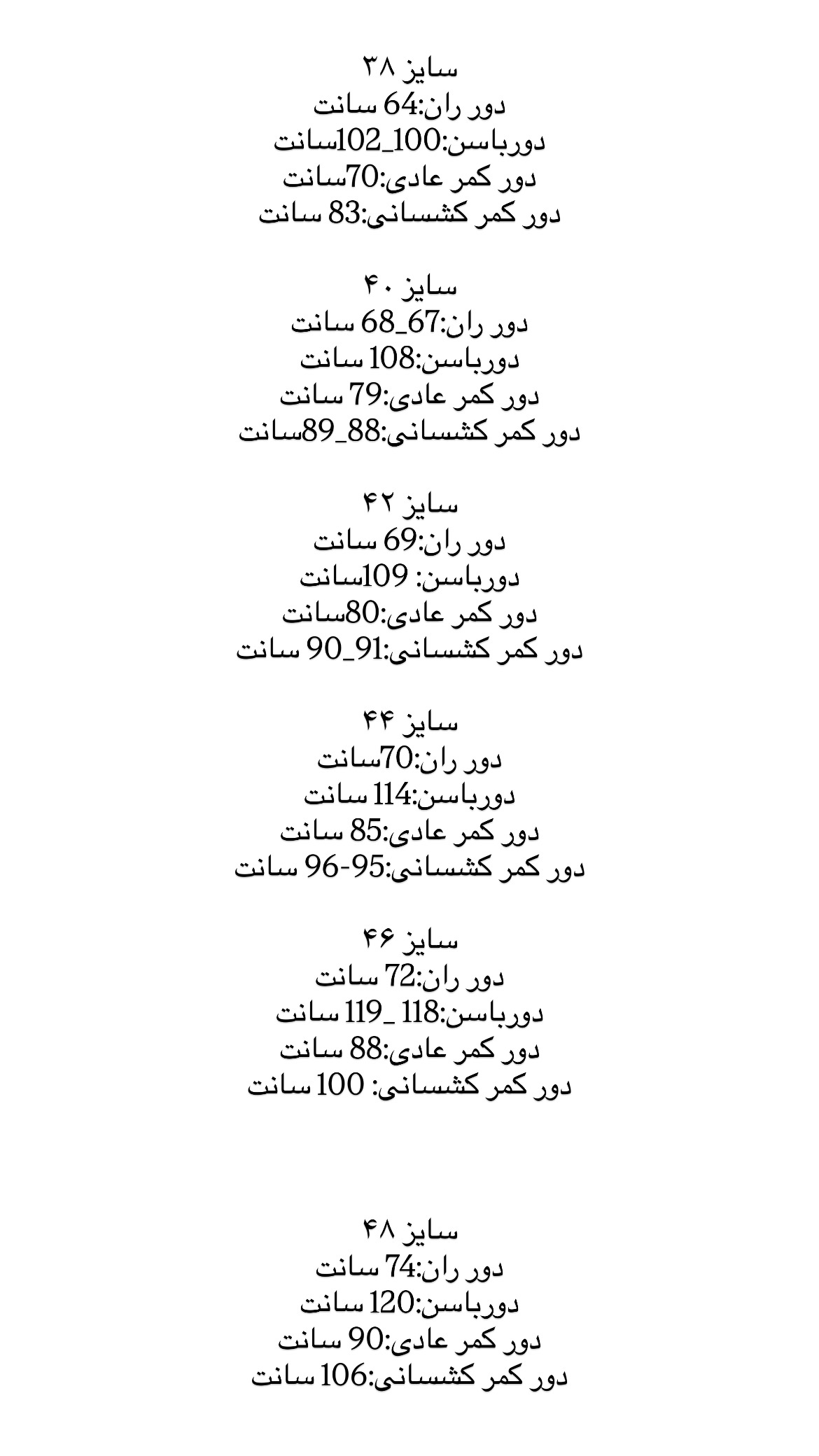 سایزبندی ۱.۲،۳،۴ ۳۶تا۵۰